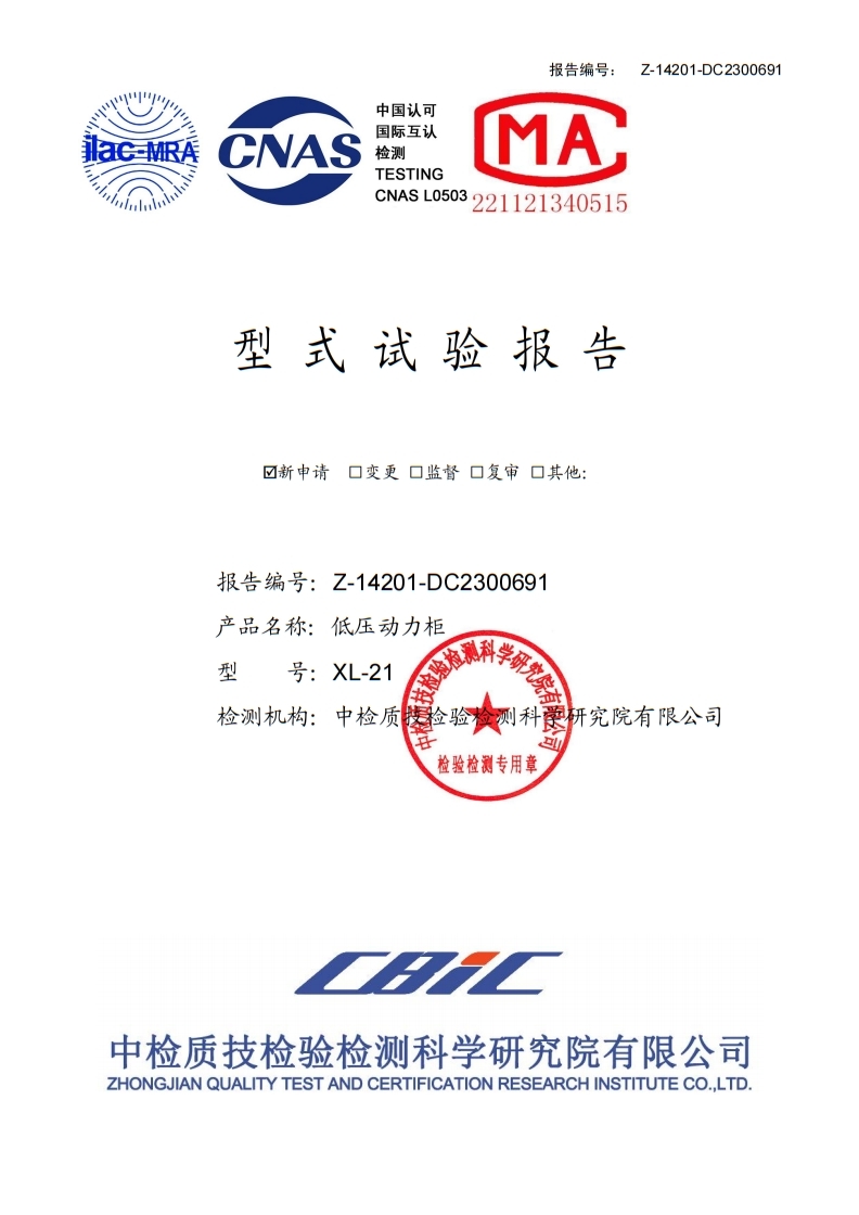 XL-21低壓動力柜試驗報告