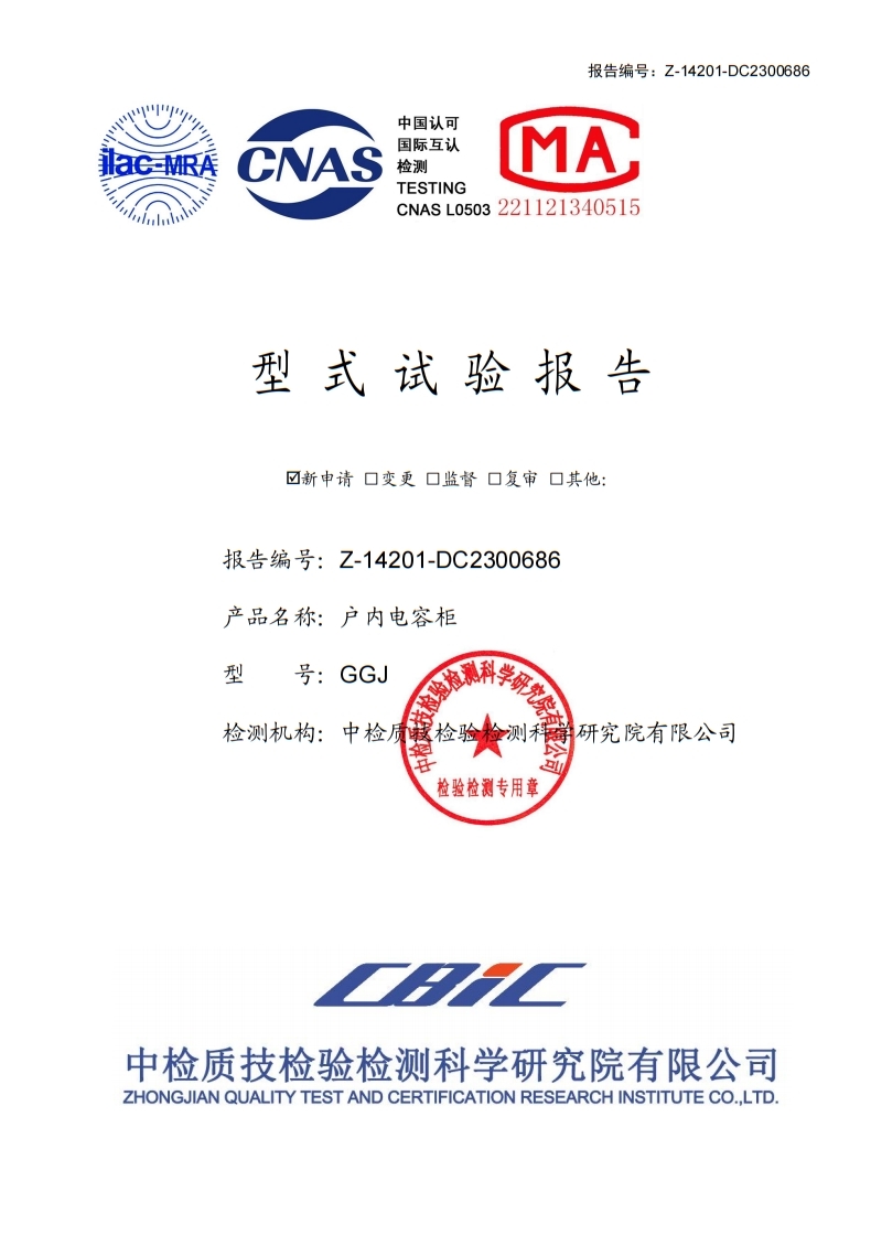 GGJ戶內電容柜試驗報告