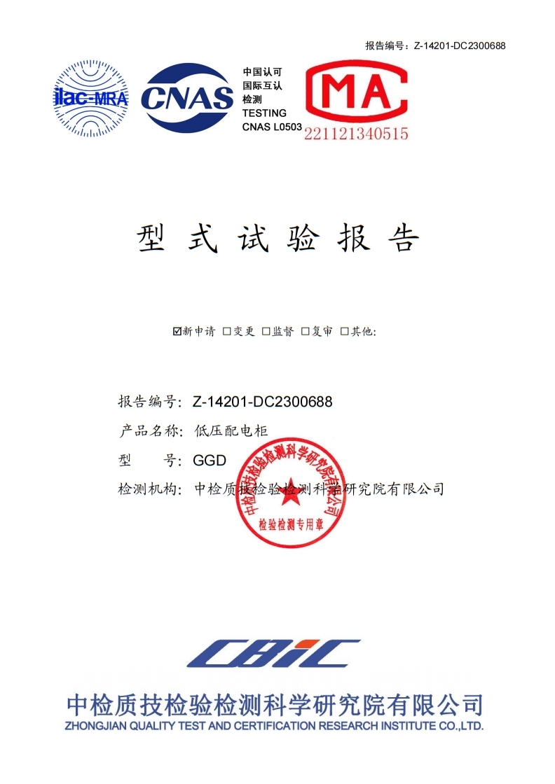 GGD低壓配電柜試驗報告